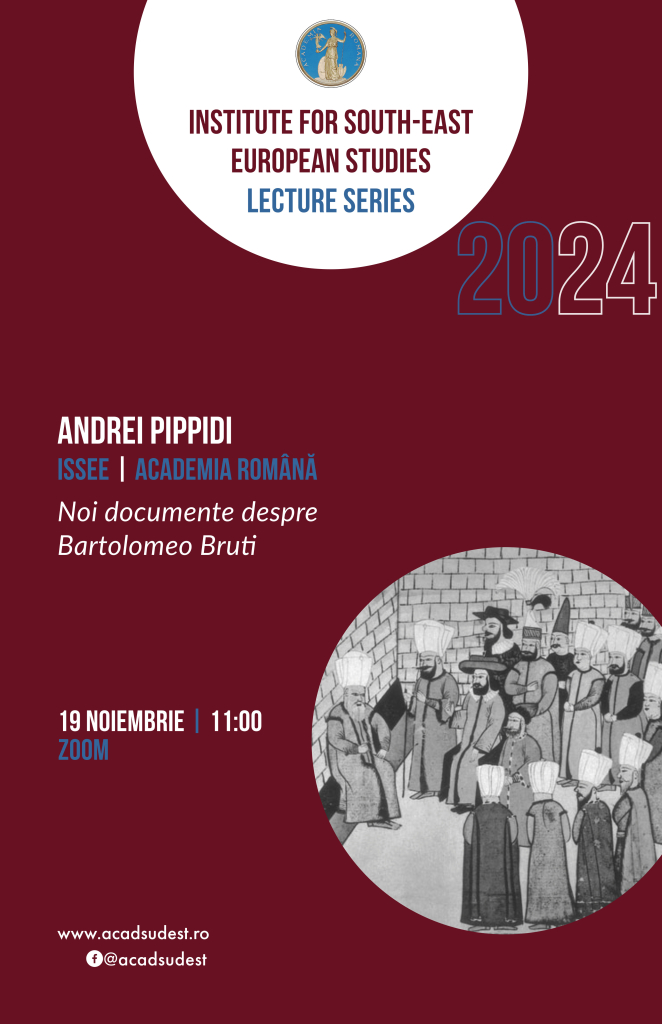 Pe 19 noiembrie 2024, începând cu ora 11.00, Prof. Andrei Pippidi (Institutul de Studii Sud-Est Europene) va susține, în format online, comunicarea Noi documente despre Bartolomeo Bruti.